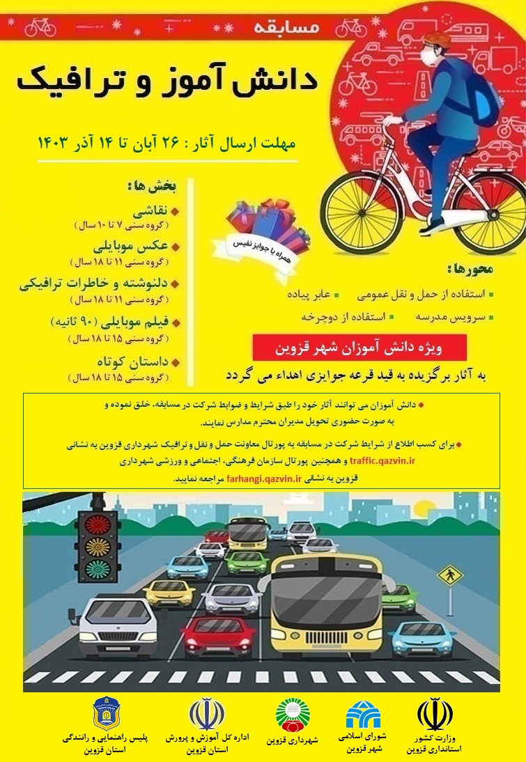 برای اطلاع از شرایط و ضوابط شرکت در مسابقه « دانش آموز و ترافیک » کلیک کنید.