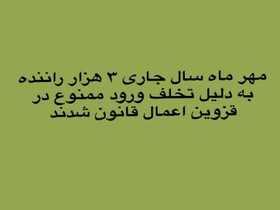 جانی معاون حمل و نقل و ترافیک شهرداری قزوین از تخلف ۳ هزار خودرو دز مهر ماه سال جاری به دلیل ورود به حریم ورود ممنوع در سطح شهر قزوین خبر داد.