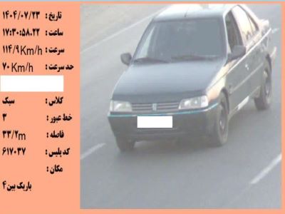 جانی در ادامه افزود: این خودرو یکی از مجموع ۳۱۵ خودرویی است که طی هفته سوم مهر ماه بیش از ۶ بار تخلف سرعت غیرمجاز داشته اند.